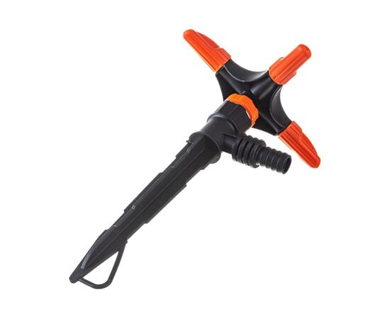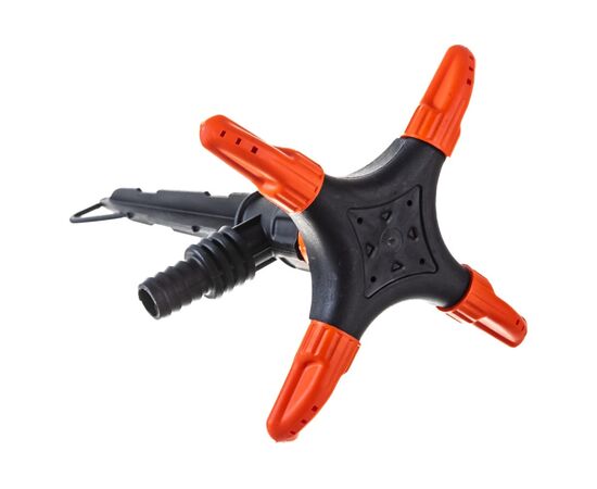 Распылитель 4-х лепестковый предназначен для стационарного полива растений в клумбах и различных небольших участках. Четыре вращающихся сопла осуществляют равномерный круговой полив сада. Подходит для шлангов диаметром 1/2" и 3/4". Благодаря специальному колышку происходит надежное крепление аппарата к поверхности. Приспособление позволяет значительно экономить время и силы, затрачиваемые на полив растений. Нужно просто включить распылитель и можно заниматься другими делами в то время, как будет проходить полив. Приспособление выполнено из пластика.