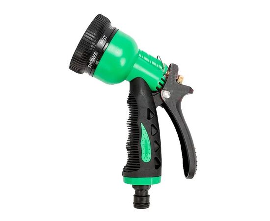 Имеет 8 вариантов форм распыления струи, удобная двухкомпонентная рукоятка с ручкой остановки полива и фиксатором.