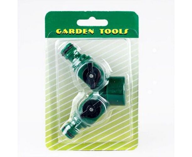 Кран двойной с адаптерами быстрого подключения V-образный - это удобный переходник-разветвитель для садового полива.