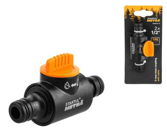 Переходник-соединитель 1/2" с регулятором напора STARTUL METSA предназначен для соединения двух шлангов, в том числе разных диаметров, на концах которых установлены быстросъемные муфты.
