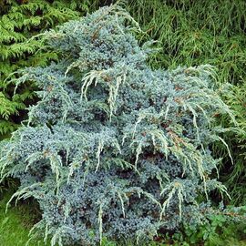 - Можжевельники имеют густую крону и разнообразную окраску хвои — от насыщенно-зелёного до голубоватого и серебристого оттенков.