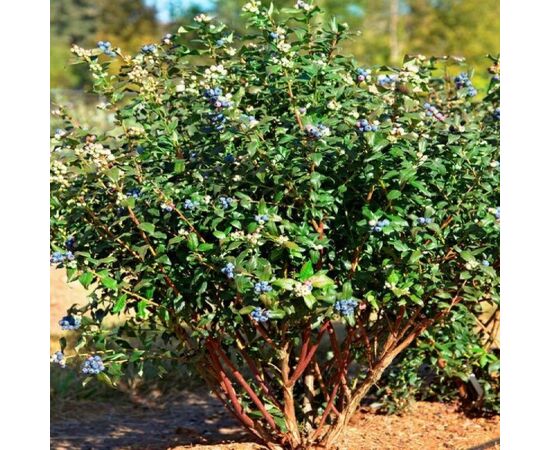 Голубика садовая является листопадным растением, относящимся к семейству Вересковые. Ее описание свидетельствует о том, что размер взрослого куста составляет около 2 метров в высоту. Мощный и ветвистый куст покрывается гладкими темно-зелеными листовыми пластинками, длина которых достигает 8 сантиметров. Диаметр взрослых ветвей составляет от 3 до 4 сантиметров. У голубики присутствует разветвленная корневая система, лишенная корневых волосков.
