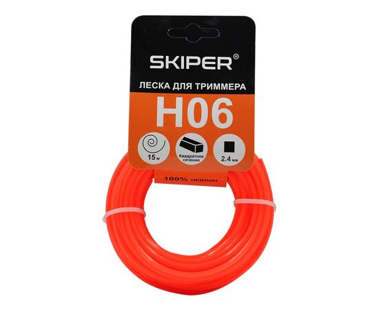 Леска ф 2.4 мм х 15 м квадратн. сеч. (оранж.) SKIPER H06