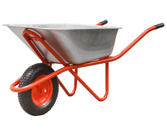 Тачка строительная ECO WB301-1 - одноколесная тачка. Стальной оцинкованный кузов. Прочная, усиленная рама. Толщина металла кузова 0,9 мм. Пылезащищённый подшипник. Большие пневматические колеса. Размеры колесного диска 4,80/4,00" х 8".