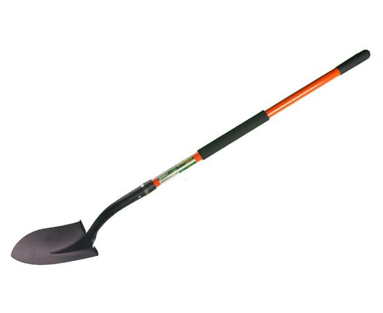 Лезвие изготовлено из высокоуглеродистой закаленной стали с защитным антикоррозийным покрытием. Фиберглассовый черенок с прорезиненной рукояткой. Ширина полотна: 220 мм, Высота полотна: 525 мм, Длина лопаты с черенком: 1480 мм. Толщина полотна 1,75мм
