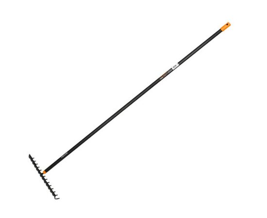 Универсальные грабли подходят для предпосадочной подготовки грунта, для сбора садового мусора и опавшей листвы. Головка из закаленной борсодержащей стали. Алюминиевая ручка. Черенок не съемный.