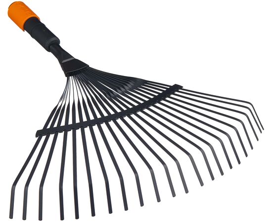 Насадка-грабли Fiskars это идеальное решения для удаления сухих листьев и подстриженной травы. Широкие веерные грабли с гибкими зубцами, благодаря своей упругости, позволяют убирать листву и другой мелкий мусор даже сквозь траву и аккуратно собирать все в кучу. Имеет 22 гибких зубца для вашего идеального газона.