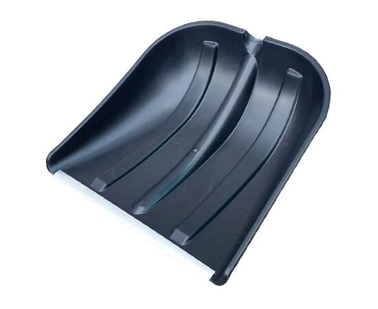 Ковш лопат изготовлен из полипропилена специальной марки. Благодаря качественному материалу получено изделие высокой прочности. Кромка лопаты защищена специальным алюминиевым профилем с небольшим закруглением по краю. Это позволяет легче убирать снег, где территория не очень ровная. Поверхность лопатного ковша гладкая, за счет постоянного контроля за состоянием оснастки, что значительно снижает вероятность налипания снега. Габариты ковша лопаты и её небольшой вес делают её одной из самых востребованных снегоуборочных лопат и позволяют использовать её не только для уборки снега, но и для зерновых работ. Поставляется без черенка, диаметр тулейки 32 мм.