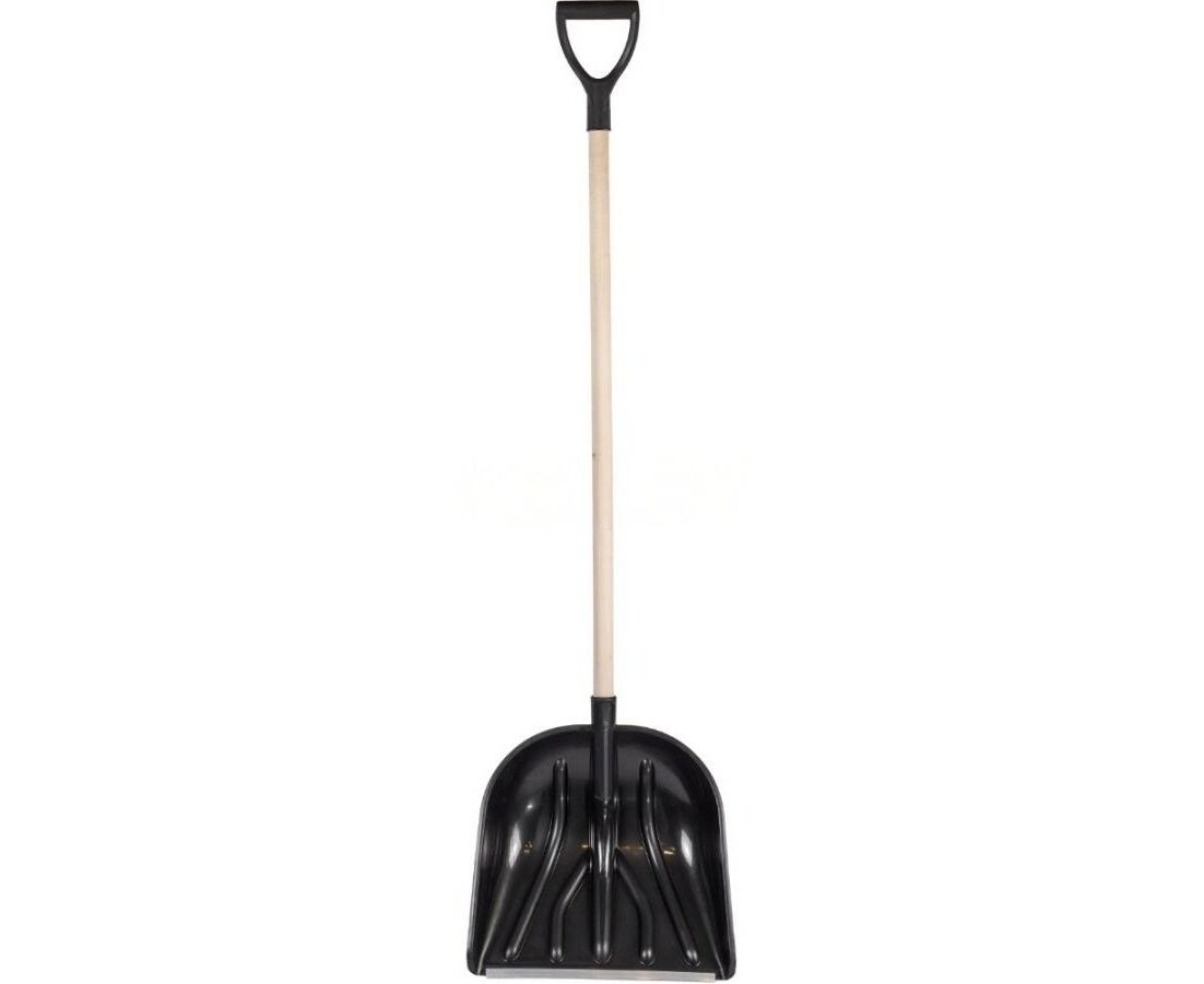 Лопата снеговая пластмассовая 410х1400 мм STARTUL Master (ST9056-3) с ковшом из морозостойкого композиционного пластика, который усилен ребрами жесткости, с П-образной кромкой в 10 мм по борту ковша, глубокой тулейкой в 153 мм. Рабочая кромка ковша защищена от износа и повреждений алюминиевой планкой, которая крепиться за углубление на ковше и зажимается прокатом. Черенок деревянный шлифованный 1 сорта. Ручка: V-образная, усиленная. Морозостойкость: -28 °C.