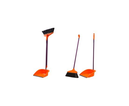 Набор состоит из метлы и совка с удлиненными ручками, что позволяет производить уборку не наклоняясь. Совок открытого типа имеет обрезиненную кромку, благодаря чему облегчает процесс подметания и не царапает напольное покрытие. Набор компактно складывается, не занимая много места, и легко разбирается благодаря резьбе на ручках. Правильное хранение синтетической метлы в перевернутом виде, ворсом вверх. Храня метлу в данном положении вы сохраните ворс от искривления, тем самым продлив ей срок службы.