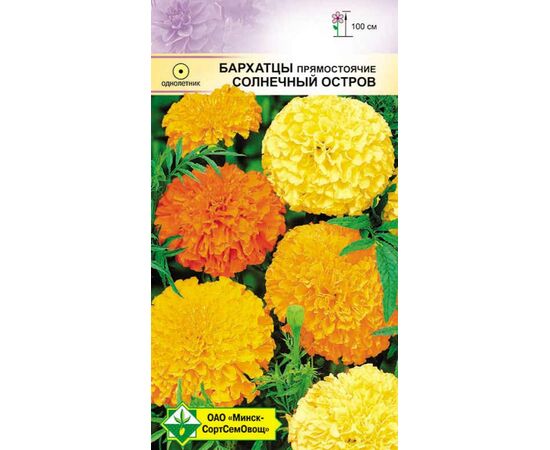 Однолетнее растение высотой до 1 м. Соцветия крупные, в диаметре 8-10 см, махровые, от желтой до бронзовой окраски, долго цветут. Популярны для клумб. Обеззараживают почву от нематод и бактерий. Семена высевают на рассаду в конце марта - апреле или прямо в открытый грунт в мае. Рассаду высаживают в грунт в мае, когда минует угроза заморозков. Предпочитают солнечное место, но цветут и в полутени.