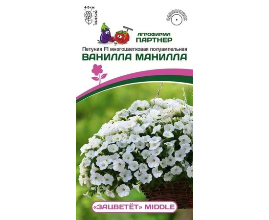 Петуния F1 "ЗАЦВЕТЕТ" Midde ВАНИЛЛА МАНИЛЛА/ многоцветовая ампельная (5 шт.в амп)