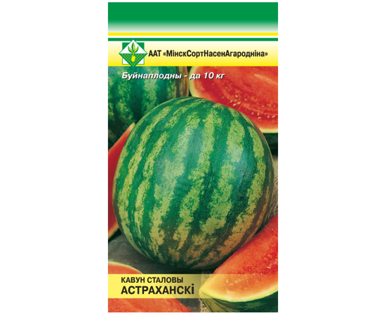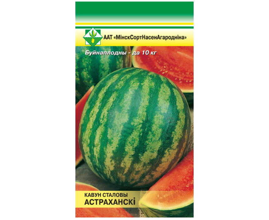 Астраханский, 85-95 дней,5-6 кг. Плоды округлые и удлиненно-округлые, зеленые с темно-зелеными полосами. Мякоть красная, плотная, очень сладкая, сочная. Рассаду высаживают под пленочное укрытие 15-20 мая в 25-30-дневном возрасте, 10-15 июня укрытие снимают.