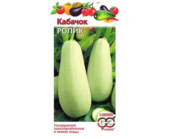 Семена кабачка Ролик 2 г - очень ранний сорт. Растение кустового типа, с укороченными междоузлиями, длина главной плети около 35 см. Плоды овальные, гладкие, белёсые, без рисунка. Мякоть в товарной спелости светло-зелёная, нежная. Прекрасный диетический продукт. Универсального назначения. Устойчив к пониженным температурам. Высадка (посев) в грунт: середина мая - середина июня. Сбор урожая: июль - конец августа.