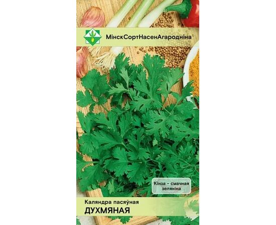 Среднеспелый сорт. Период от всходов до начала уборки на зелень 45 дней, до созревания семян – 110-125 дней. Растение высотой 60-70 см. Зелень (кинзу) употребляют в пищу в свежем виде, семена используют для ароматизации хлеба, мясных консервов, маринадов. Обладает лечебными свойствами. Хороший медонос. Для непрерывного получения зелени посевы повторяют через 2-3 недели.