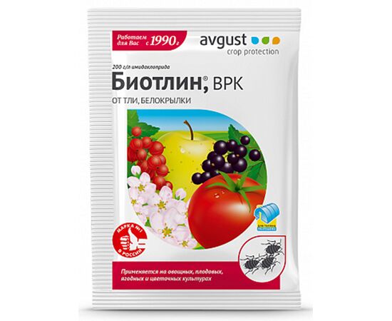 Системный препарат для уничтожения различных видов тли, а также белокрылок, цветоедов, трипсов на плодовых, ягодных, овощных и цветочных культурах. Эффективен против насекомых, скрытоживущих и питающихся на нижней стороне листа, обладает высокой скоростью воздействия - эффект от обработки наблюдается уже через несколько часов, не вызывает привыкания у вредителей.