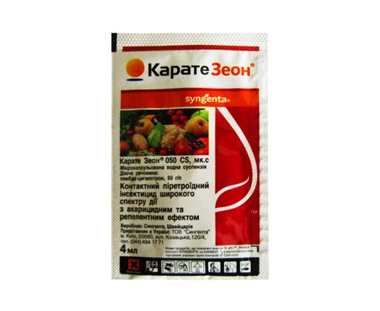 Средний размер капсул – 2,5 мкм. Действующее вещество препарата – лямбда-цигалотрин помещено в тонкую полимерную оболочку. В капсулу добавлено вещество, защищающее от УФ лучей и продлевающее период активности препарата. Благодаря технологии ЗЕОН увеличивается продолжительность защитного действия. Новая формуляция безопасна для пчел. Препарат стабилен при хранении, в баке опрыскивателя, в рабочем растворе при опрыскивании. Действующее вещество быстро проникает через кутикулу насекомых и вызывает паралич нервной системы.