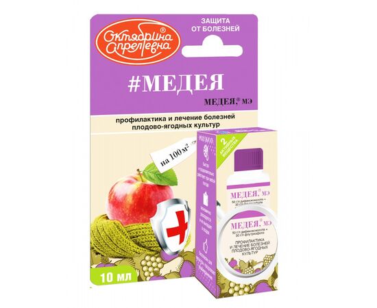 Защита от болезни плодово-ягодных культур "Медея" 10мл. - это высокоэффективное средство для защиты яблонь и виноградных лоз от различных заболеваний. Производитель Октябрина Апрелевна гарантирует качество и безопасность продукта. Средство легко наносится и быстро впитывается, не оставляя следов на растениях. Оно обладает длительным действием и защищает растения от болезней на протяжении длительного времени. Защита от болезни плодово-ягодных культур "Медея" 10мл. - надежный помощник в борьбе за здоровье и урожайность вашего сада.
