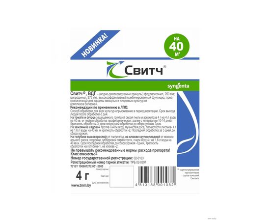 Рекомендован для применения на томатах, огурцах, винограде, клубнике, клюкве, голубике и защищает растения до 20 дн. Часть препарата остается в кутикулярном слое ягоды, защищая от внедрения спор в ее ткани, другая часть быстро проникает в ткани растения и перераспределяется. Действие препарата начинает проявляться через 2-3 ч после применения.
