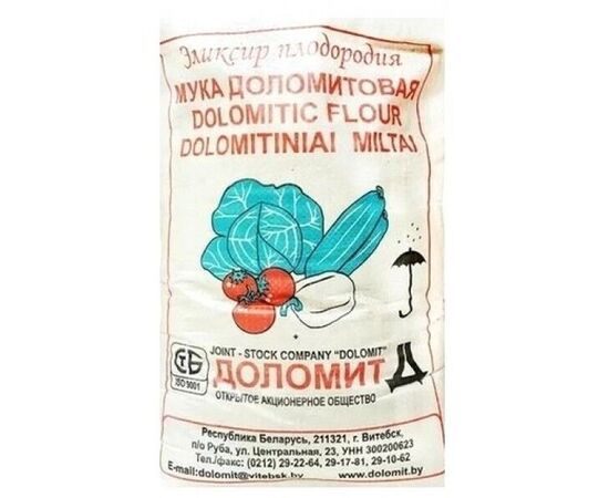 Мука известняковая фасованная имеет предназначение тоже, что и доломитовая мука, и производится из этого же сырья. Но производится фасовка в полипропиленовые мешки по 30 кг для удобства её использования конечными покупателями. Фасованная мука получила большую признательность у людей, имеющих собственные дачные или приусадебные участки. То есть в итоге конечный потребитель получает полезное и экологически чистое минеральное удобрение в удобной для использования упаковке. Срок годности не ограничен. Это размол доломита который является ценным известковым удобрением для многих культур: моркови, свеклы, картофеля, клевера, люцерны, гречихи, лука, льна, и др.