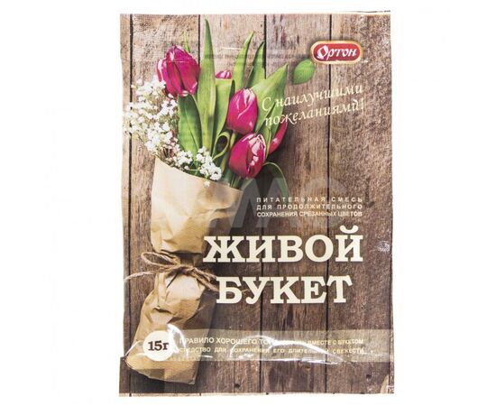 Для продления жизни срезанных цветов и сохранения их декоративных качеств в букете. «Живой букет» подходит для всех срезанных цветов.