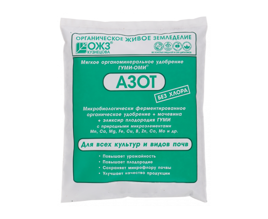 Порошково–гранулированное удобрение с необходимыми для питания растений макро- и микроэлементами и эликсиром плодородия Гуми, с высоким содержанием азота. Повышает урожайность, плодородие, улучшает структуру почвы и улучшает качество продукции.