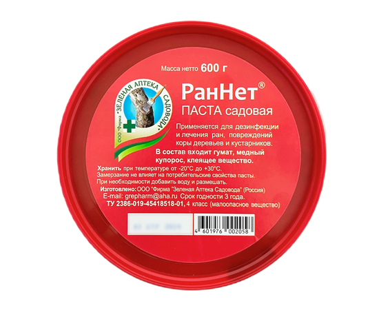 Замазка садовая РанНет 600 г предотвращает соковыделение в местах срезов деревьев и кустарников, дезинфицирует раны, лечит повреждения коры, стимулирует активное заживление раны.