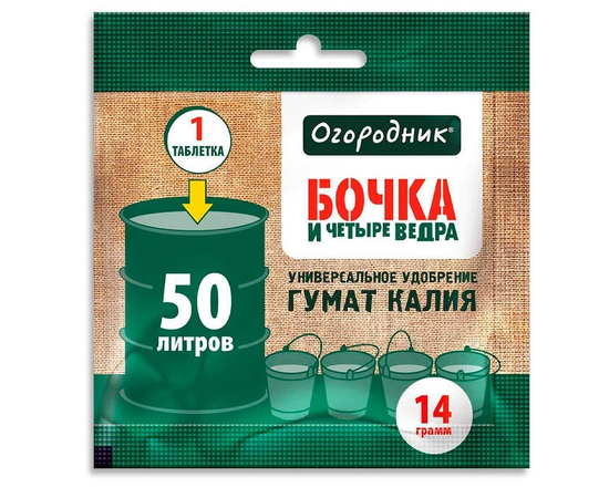 Удобрение огран водораств в табл Бочка и четыре ведра гумат калия 14 г.