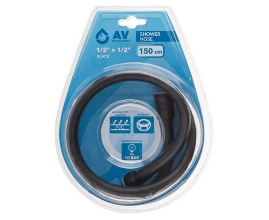 Шланг душевой, PVC, 1/2" г-г 150 см, чёрный, AV Engineering