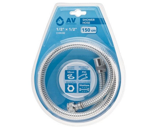 Шланг душевой PVC, 1/2" г-г 150 см, хром, AV Engineering