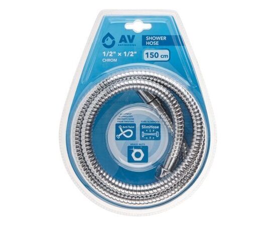 Шланг душевой SUS/EPDM, 1/2" г-г 150 см, хром, anti-twist, AV Engineering