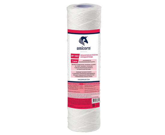 Картридж механический из полипропиленового шнура 10'', 1 мкм UNICORN (РР 1020)