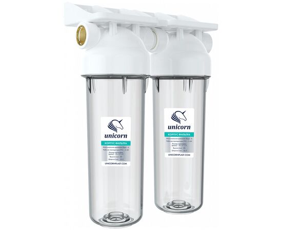 Фильтр магистральный 1/2", KSBP DUO двойной для хол. воды прозр. 10 Unicorn