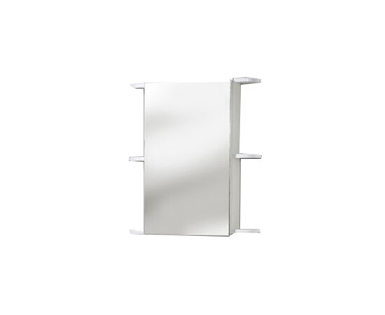 Подвесная зеркальная полка используется для размещения в ванной комнате и придает законченный вид интерьеру. Для хранения моющих и чистящих средств модель оборудована несъемной полкой внутри и открытыми полками по бокам. Зеркало не искажает отображение и устойчиво к сколам и царапинам.