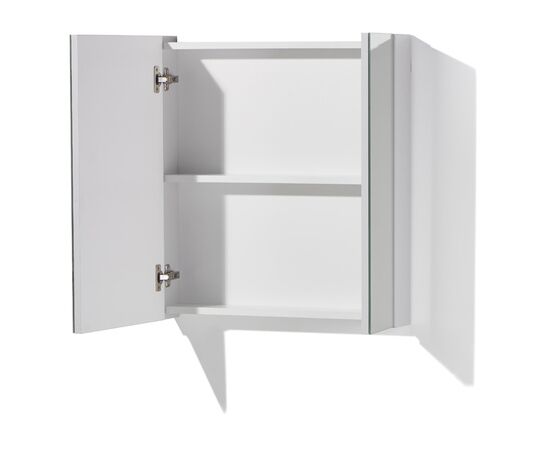 Корпус : ДСП ламинированная т.16 мм (Серый камень). Фасад: ДСП ламинированный с зеркальным полотном. Задняя стенка: ДВП. Двери распашные с зеркалом, несъемная полка. Продается в разобранном виде.
