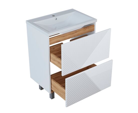 Стильная коллекция ВЕКТОР создана для поклонников геометрии в дизайне. Она идеально впишется в современный интерьер и расставит акценты в монохромном дизайне. Рельефный фасад тумб добавит объемные текстуры в интерьер ванной комнаты. Выдвижные ящики с механизмом открывания push-to-open обеспечивают бесшумное и плавное закрывание.