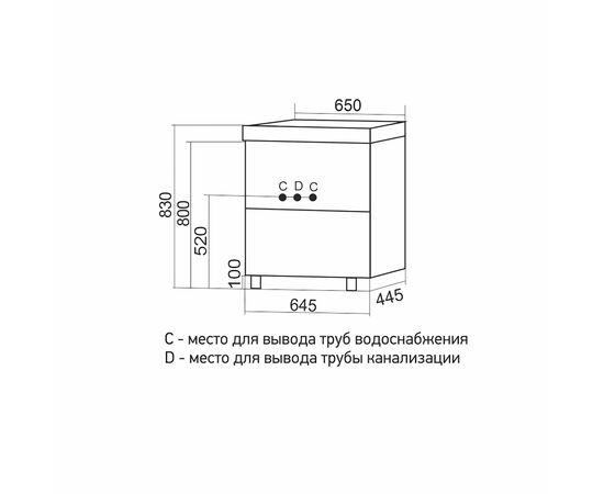 - Глубина тумбы с раковиной +- 2 мм: 450