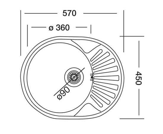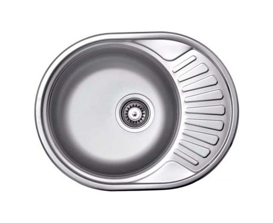 Мойка из нержавеющей стали, врезная, овальная, с выпуском 3 1/2", без сифона. Чаша слева.