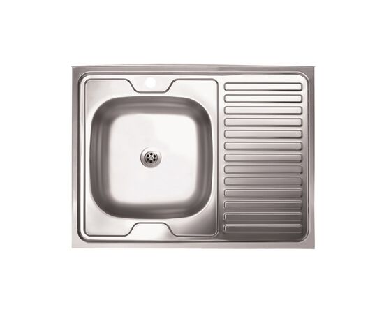 Мойка из нержавеющей стали, накладная, прямоугольная, чаша слева, без сфона.