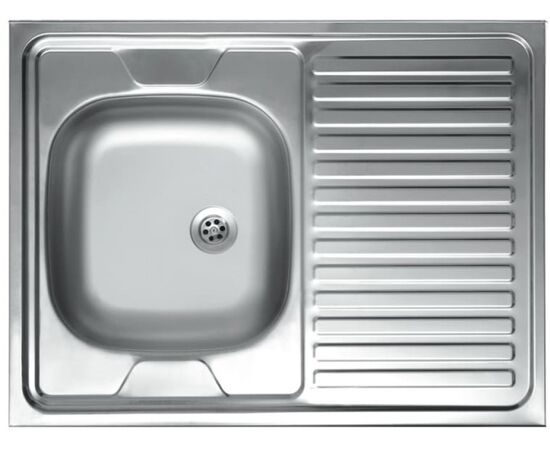 Кухонная мойка Kromrus S 420 RUS 80×60, накладная. Ширина шкафа-40 см. Материал-нержавеющая сталь толщиной 0.4 мм. Цвет-сатин. Изображение и цвет на мониторе могут отличаться от оригинала.