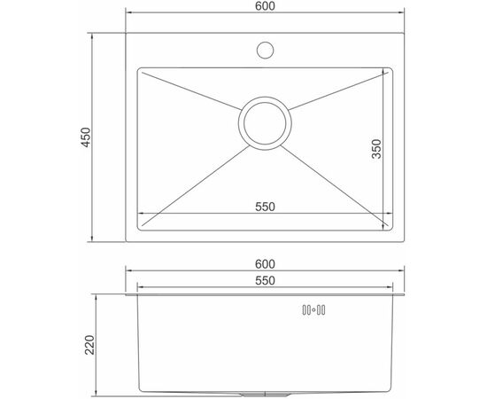 Мойка подст. монтаж 60х45 (3,0) вып 3 1/2 MIXLINE PRO 22см с сифоном (сатин)