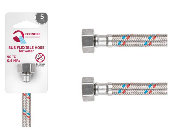 Подводка гибкая, SUS, гайка 1/2" - гайка 1/2" 80см ECONOCE