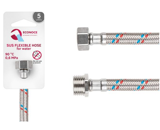 Гибкая подводка для воды от ECONOCE - это универсальный и практичный способ подключения сантехнических приборов к системе водоснабжения и канализации. Она обеспечивает надежное и герметичное соединение, а также позволяет легко и быстро установить приборы в любом месте ванной или туалета. Длина шалнга, см - 60