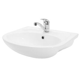 Монтируется в подвесном варианте, под раковиной возможна установка пьедестала, который закроет неэстетичные водопроводные коммуникации и придаст всему интерьеру привлекательность и красоту. Раковина имеет полукруглую форму и несколько отверстий: под смеситель, слив и аварийный перелив. Кроме...