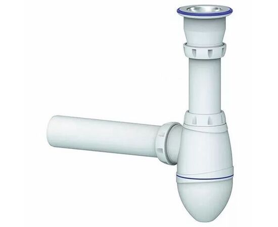 Сифон для тюльпана, умывальника прикручивающийся выпуск 1 1/2" (Ø40), винт 6×80, чашка из нержавеющей стали, отвод в канализацию Ø40.