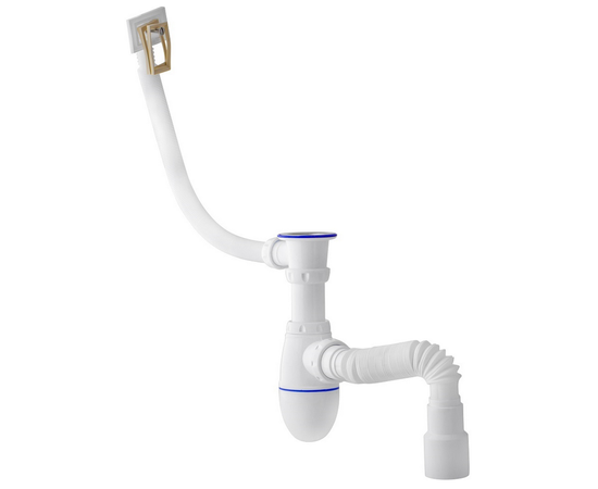 Сифон для мойки с выпуском 1 1/2'' (Ø40) - с прямоугольным вертикальным переливом - с нержавеющей чашкой Ø112 - с гибким отводом в канализацию Ø40×40/50. Применение - для мойки. Предназначен для сливных систем. Резьба 1.1/2"х40