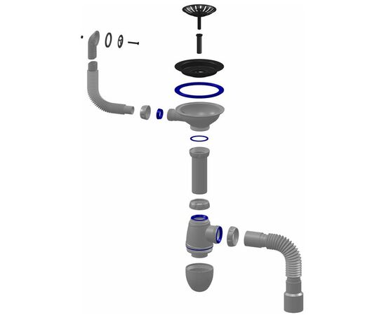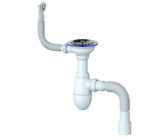 UNICORN B426P, Сифон 3 1/2*40 с круглым переливом, с гофрой 40*40*50 (винт, шток, ручка - пластик).Сифон для кухонных моек c прикручивающимся выпуском, с нержавеющей решёткой, с переливом и гибким отводом в канализацию. Сетка сливного отверстия служит пробкой (винт, шток, ручка - пластик).