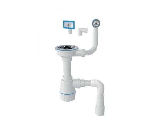 Сифон для кухни, два перелива, пластик. винт, выпуск 3 1/2, с гибкой трубой 1/2" - 40/50мм