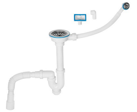 Сифон для кухни прямоточный с авар. выходом, выпуск 3 1/2, 1 1/2"-40/50мм, AV Engineering