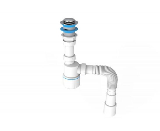 Сифон для умывальника, click-clack, гайка 32 мм, с гибк. труб. 1 1/4"- 40/50мм, AV Engineering